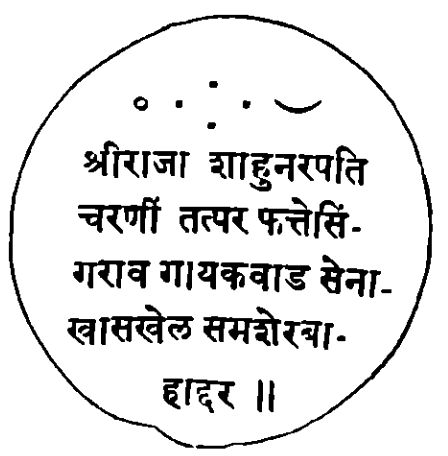 श्रीसकलगुणालंकरणअखंडितलक्ष्मीअलंकृत राजमान्य स्नो फत्तेसिंगराव गायकवाड सेनाखासखेल समशेरबाहादर दंडवत विनंती येथील कुशल जाणून स्वकीय कुशल लिहित असिलें पाहिजे. विशेष राजश्री अंताजी नागेश येथें आले. त्यास दरबारचे वगैरे जाबजाल पुसिले. येथून दरबारचे भरण्यास ऐवज दरसाल देत गेलों. तो सरकारांत न पावतां सरकारचा पेंच तसाच राहिला. असेंहि असतां, इतके दिवस चालविले. पुढें आमचे घरांतील पेंच, मारनिल्हेचा पहिलेपासून बखेडेखोर कारभार, या अर्थी याचा बंदोबस्त करणे अला. येविसीचे सविस्तर राजश्री बाळाजी नाईक निवेदन करतील. त्यावरून विदित होईल. या छ २ माहे शोबान, बहुत काय लि. हिणे १ लोभ करावा हे विनंती. मोर्तबसुद.