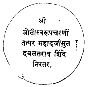अखंडितलक्ष्मीअलंकृत राजमान्य स्नेहांकित दौलतराव शिंदे विनंति उपरी येथील कुशल जाणोन स्वकीये लिहीत जावें. विशेष राजश्री आपाजी रामचंद्र मालगांवकर यांचा व जोती मोरेश्वर यांचा देण्याघेण्याचा लढा आहे. त्यांस उभयतांची बोलणीं तुमचे विद्यमानें जालीं असतां, हाली जोती मोरेश्वर आपाजी रामचंद्र यांचे घरीं उपद्रव करत आहे, म्हणोन विदित जाहलें. त्याजवरून हें पत्र तुम्हांस लिहीलें असे. तरी तुमचे विद्यमानें बोलणीं जाली असतां, घरी जाऊन उपद्रव करावयाचें प्रयोजन काय ? तरी त्याचीं माणसें यांचे घरीं बसलीं असल्यास, बेमुरवत उठऊन देणें आणि पुन्हां याचे घरीं उपसर्ग होऊं न देणें. फिरोन बोभाट येऊं न देणें. रा। छ ४ रमजान, सु।। मयातैन व आलफ. बहुत काय लिहिणें ? हे विनंति.