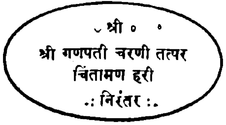 अखडितलक्ष्मी-अलंकृत राजमान्य स्ने।। चिंतामण हरि सुभेदार †आशिवार्द. उपरी. येथील कुशल जाणोन स्वकीये कुशल लिहीत असावें. विशेष प॥ नंदुरबार येथील तुम्हाकडील मुकासा सरकारांत जप्त करून कमावीस $सुभां सांगितली. सुभाहून पा।मा।रचे मुकासियाची कमावीस राजश्री शंकराजी खंडेराव यास सांगितली असे. तरी सदरहू मुकासियाचा अंमल मानिले करितील. तुम्ही १दखलागिरी न करणे. रा। छ १७ रजब सु॥ समान सितैन मया अलफ. बहुत काय लिहीणें ?